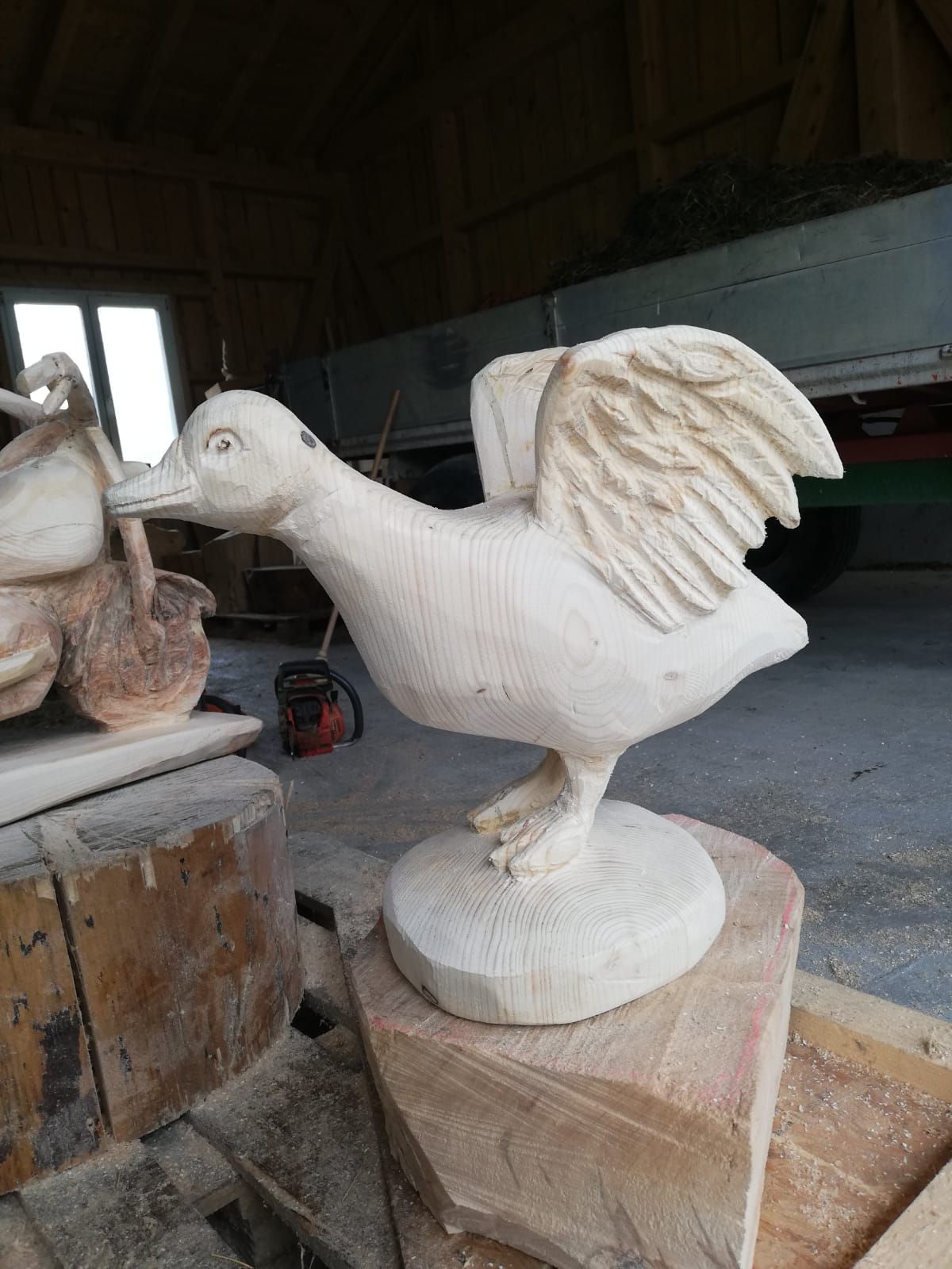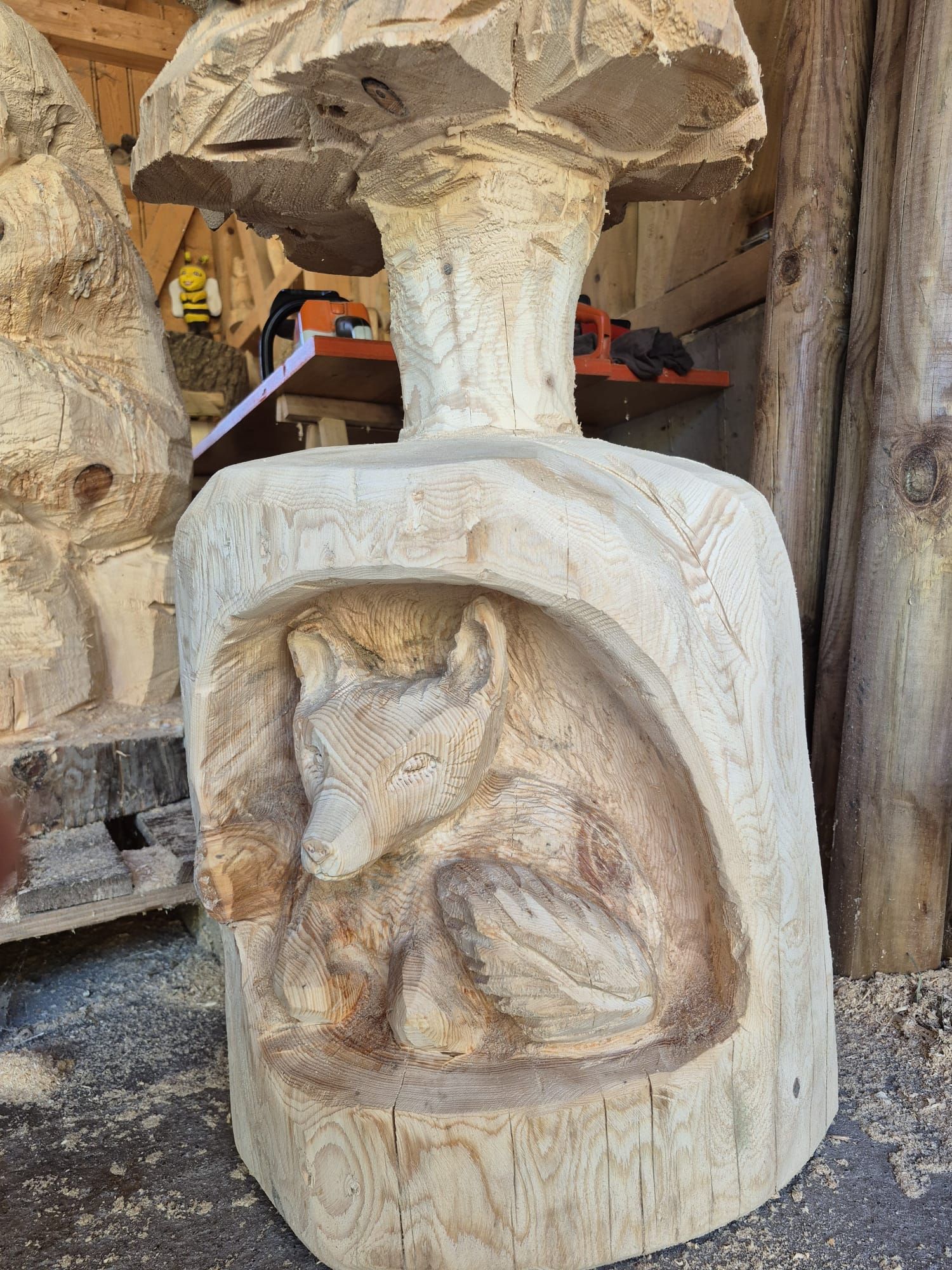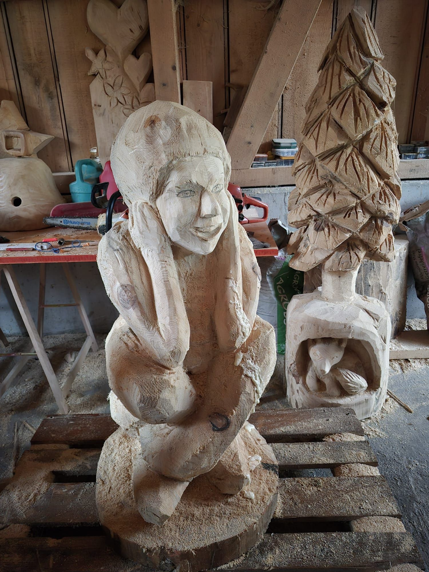 Luzia schnitzt mit der Motorsäge einzigartige Kunstwerke. Gerne auch auf Bestellung.
