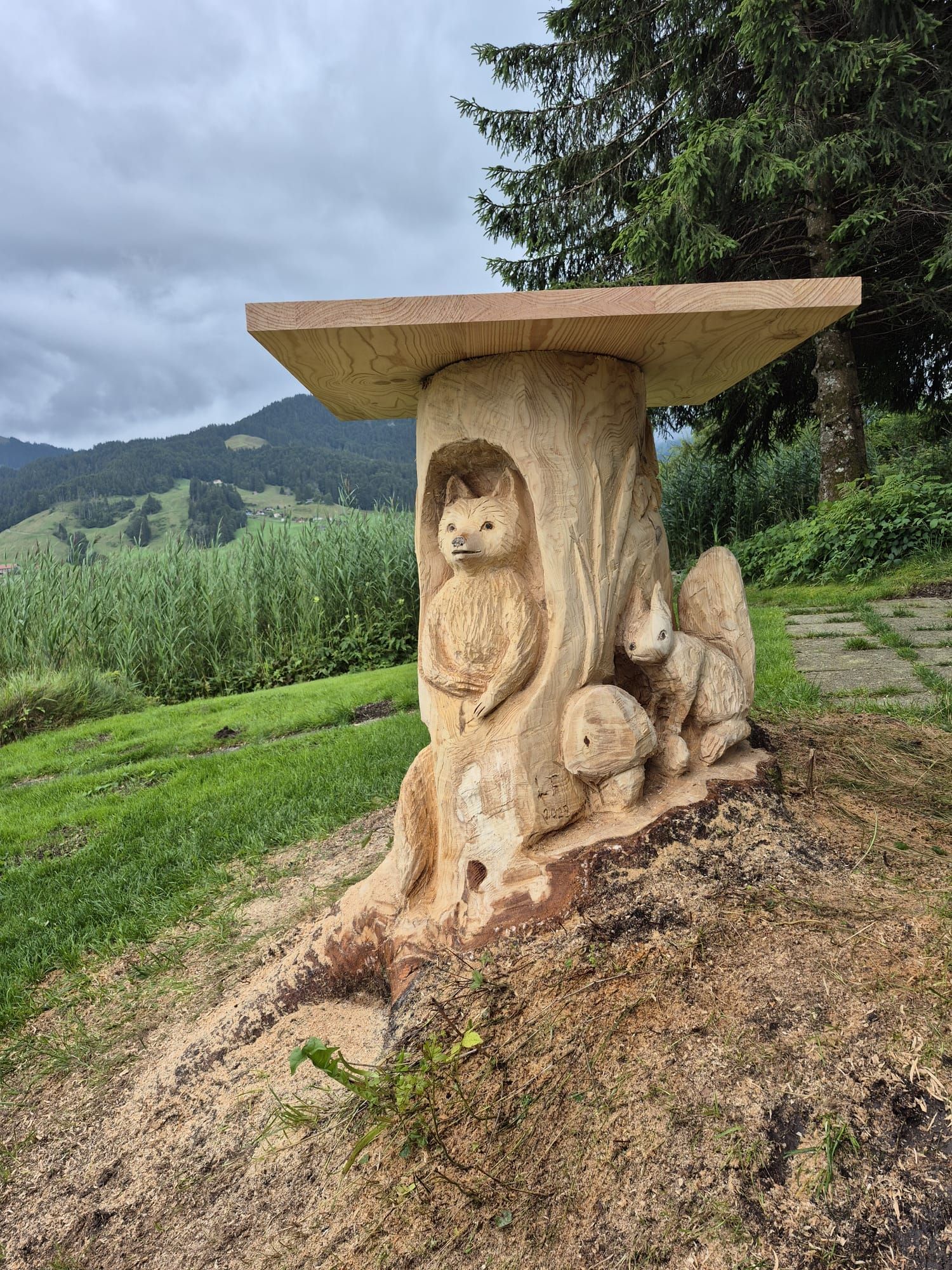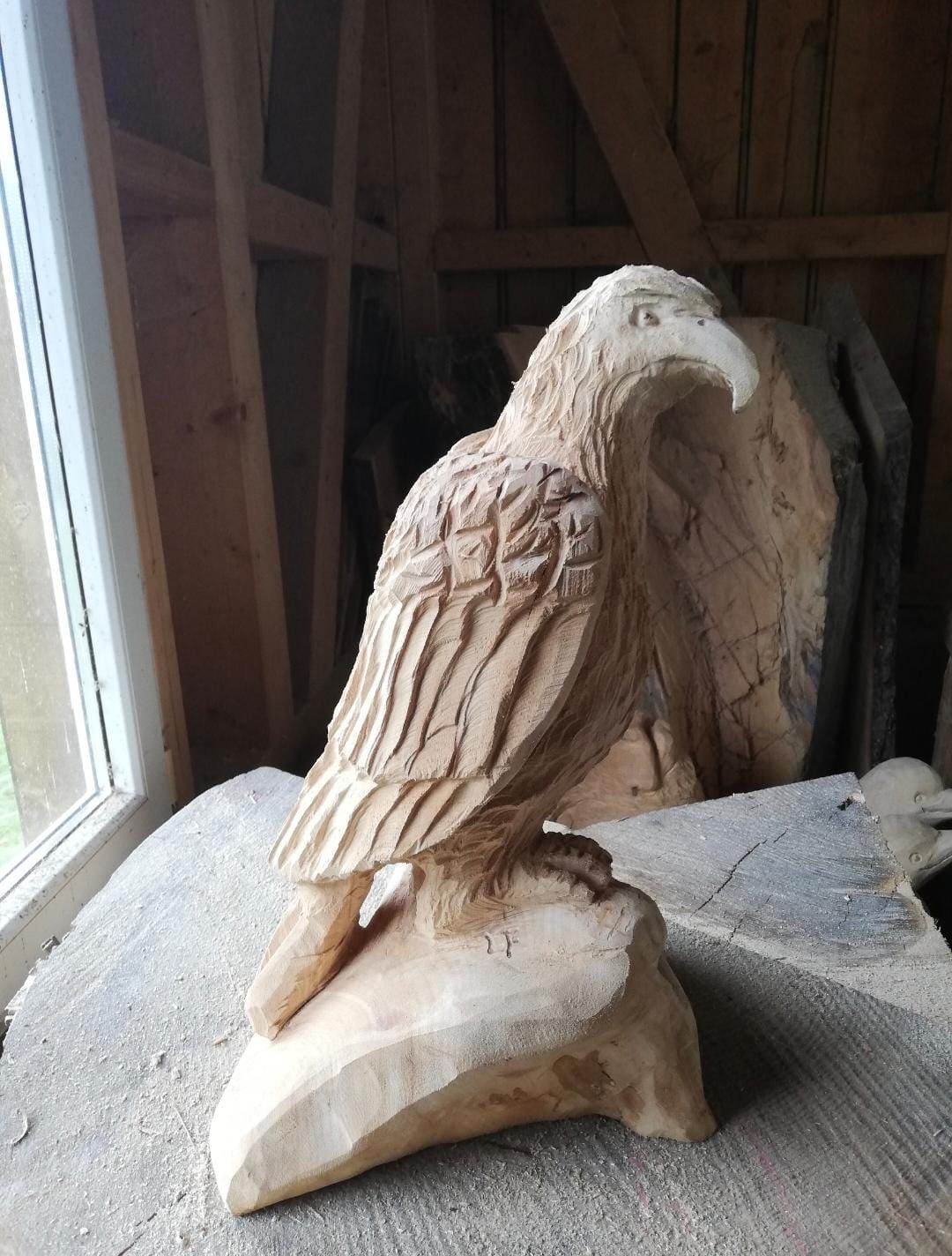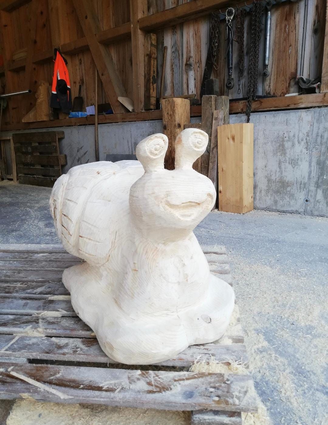 Luzia schnitzt mit der Motorsäge einzigartige Kunstwerke. Gerne auch auf Bestellung.